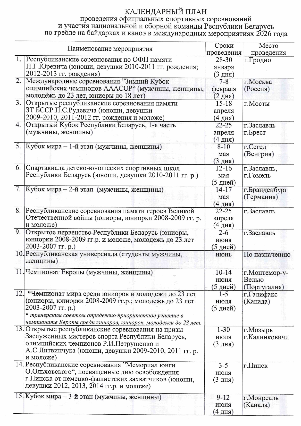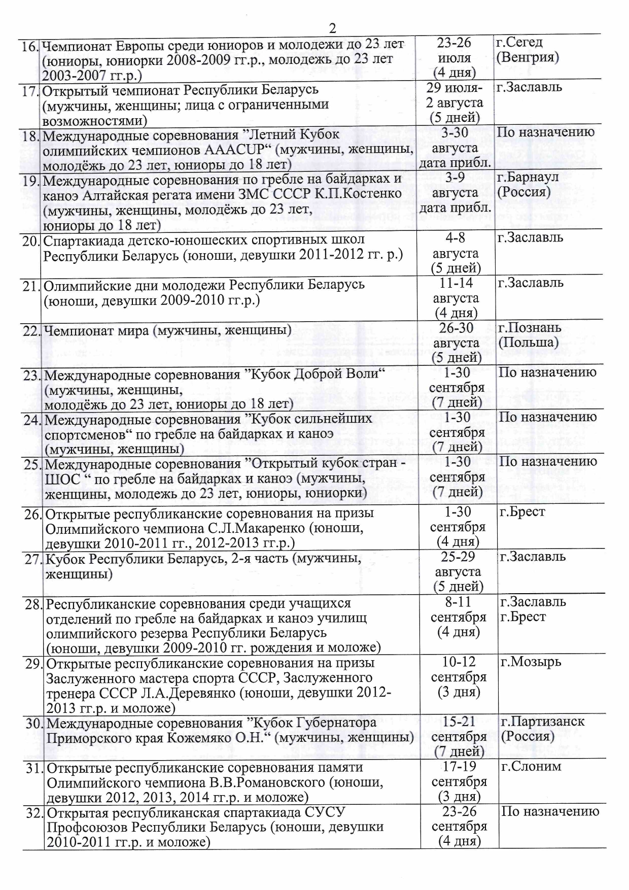 - включить греблю на байдарках и каноэ в Олимпийскую программу.