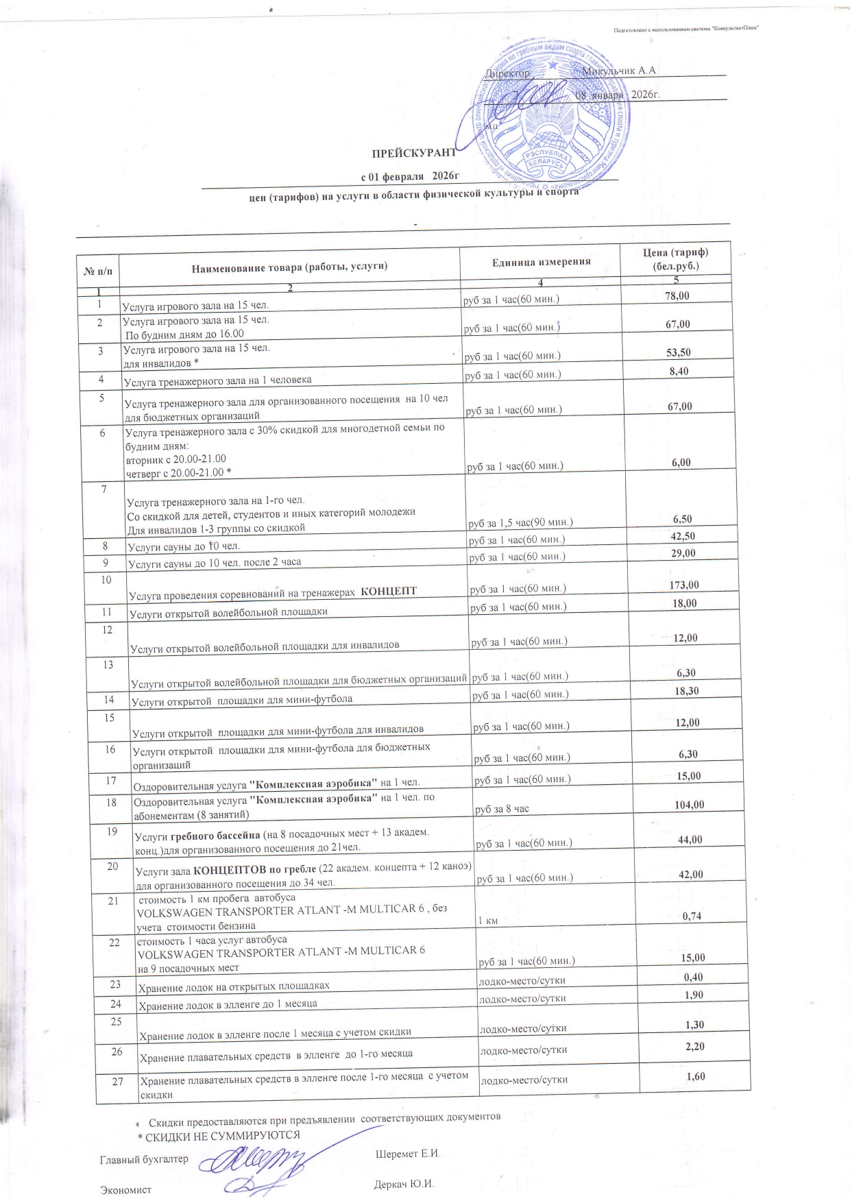 Тренажерный зал Стоимость разового посещения 8,40 бел. руб