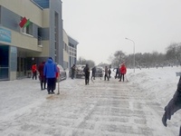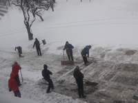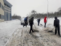 Циклон "Эмма", так же как и циклон "Даниэлла" не застал наш центр врасплох. Вся мужская часть коллектива и спортсмены дружно вышли на уборку снега и успешно с ней справились.
