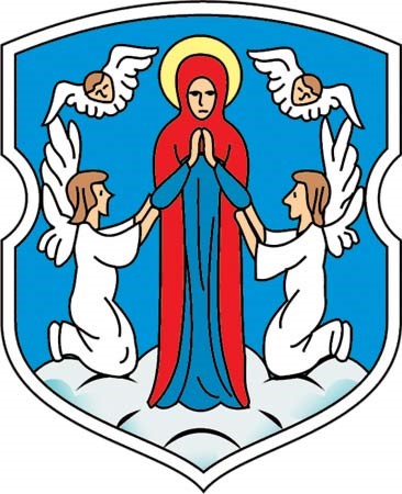 Официальное описание герба: «Герб города Минска представляет собой барочный щит, в голубом поле которого находится изображение Пречистой Девы Марии. Она стоит на серебряном облаке с поднятыми руками в благословляющем жесте в одеждах красно-синего цвета, которую справа и слева поддерживают два ангела, стоящие на коленях, в серебряных одеждах с серебряными крыльями. С двух сторон над головой Богоматери парят два херувима с серебряными крыльями. Над головами Богоматери, ангелов и херувимов — золотые нимбы».