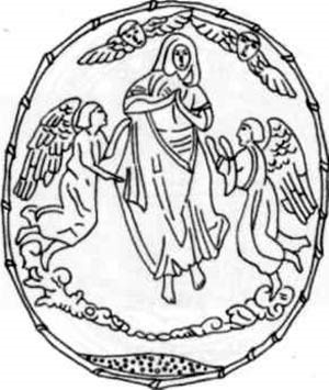 Печать Менска 1770 г. Встречается на документах 1770-1791 гг. Легенда (круговая надпись) на печати в переводе с латыни означает: «Печать Вознесения ясным королем Сигизмундом Августом городу Минску в 1552 г. жалована и в 1770 г. восстановлена». Следует заметить, что на печати иконографический сюжет, вопреки легенде, — не Вознесение, а Коронование Девы Марии