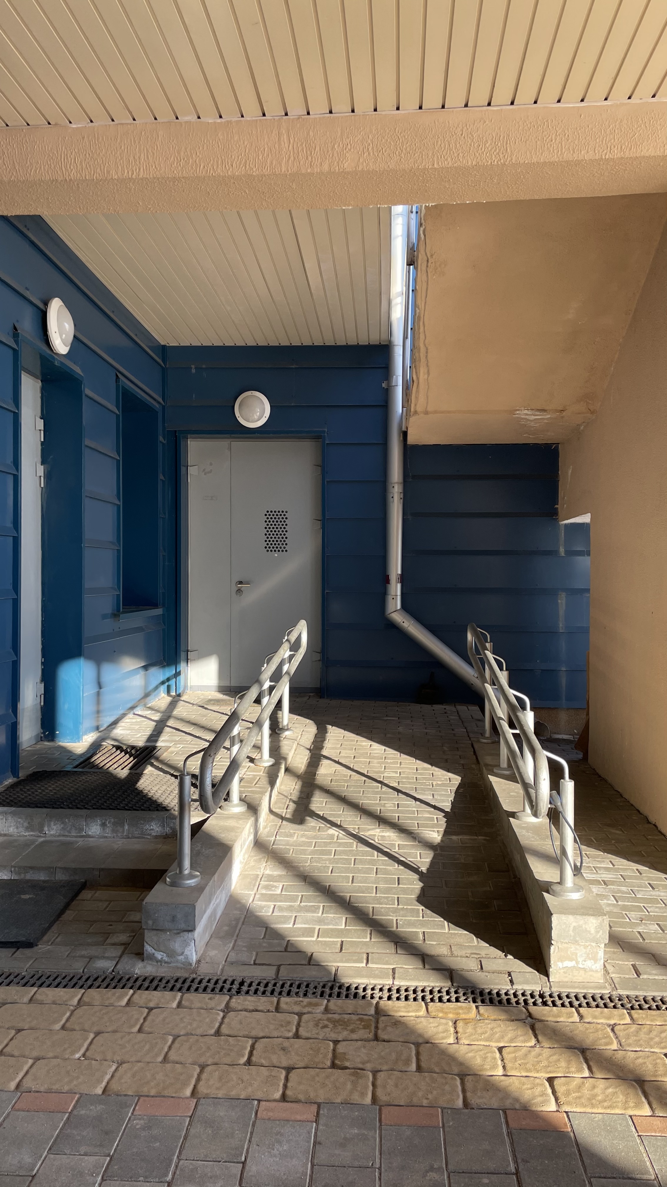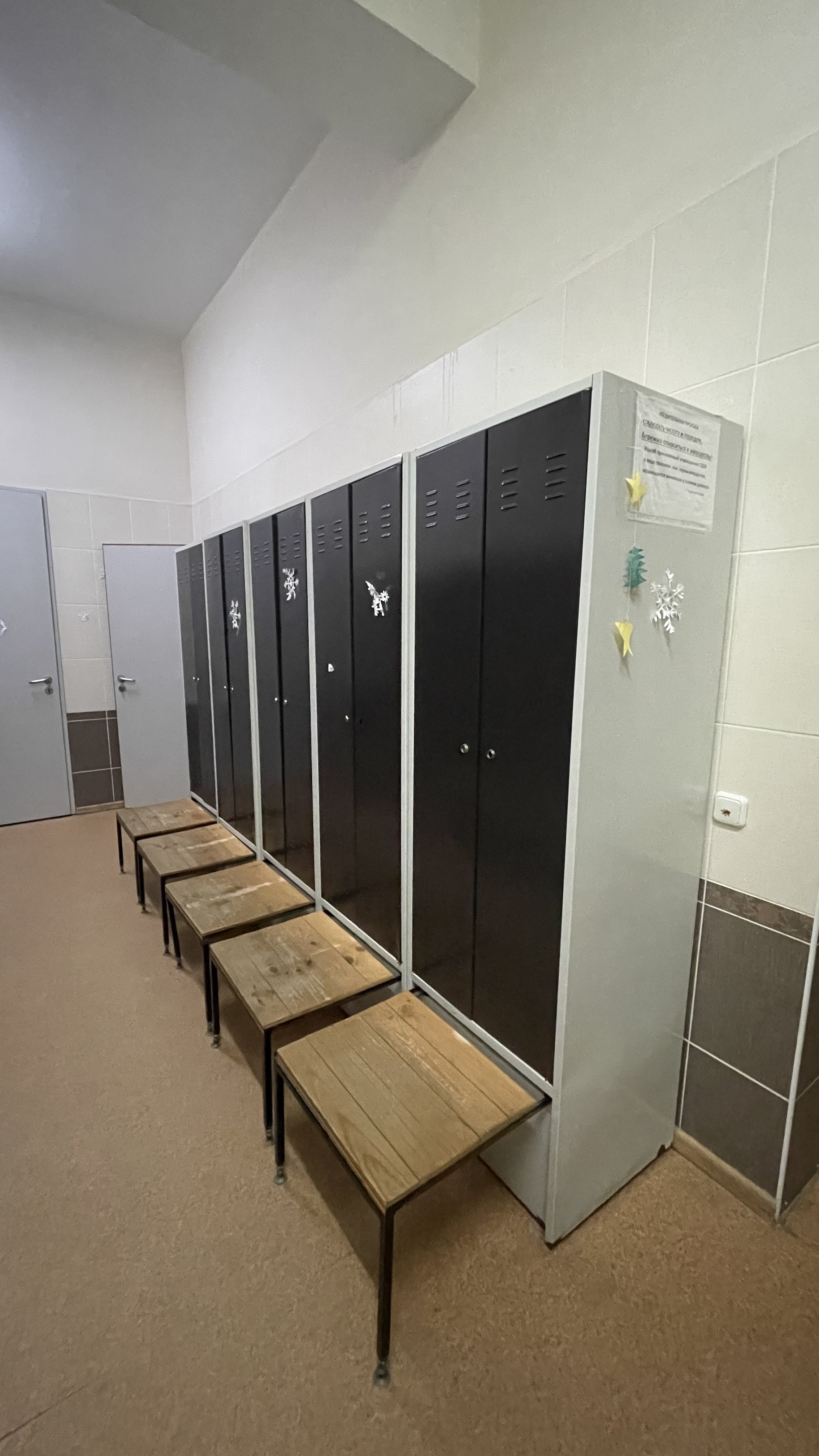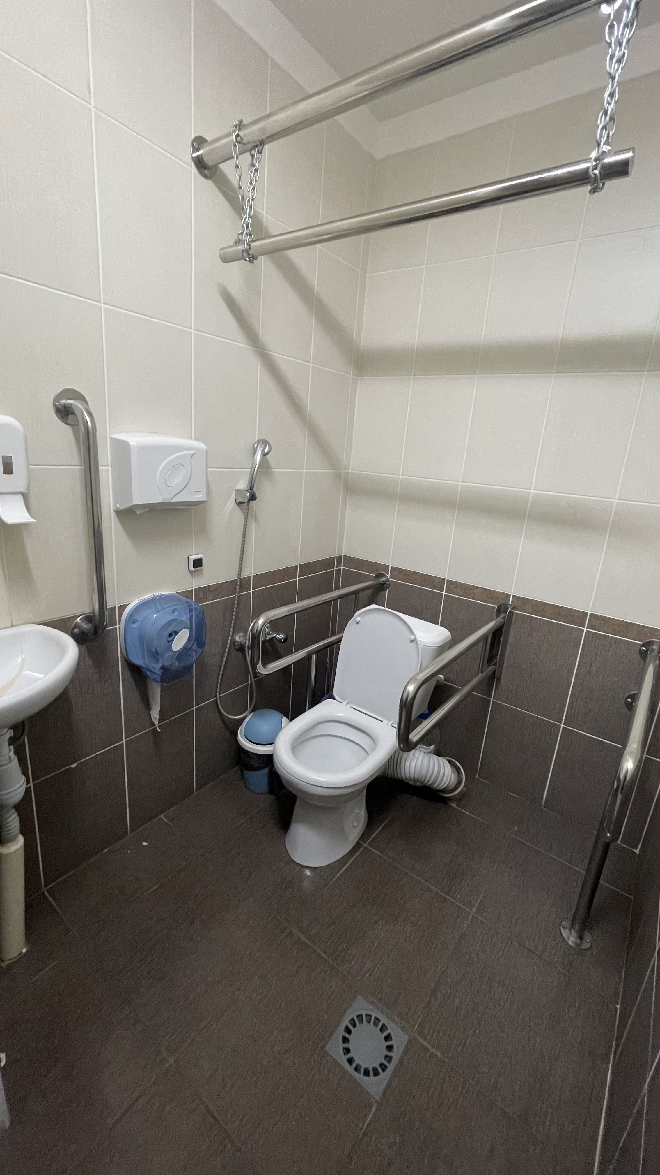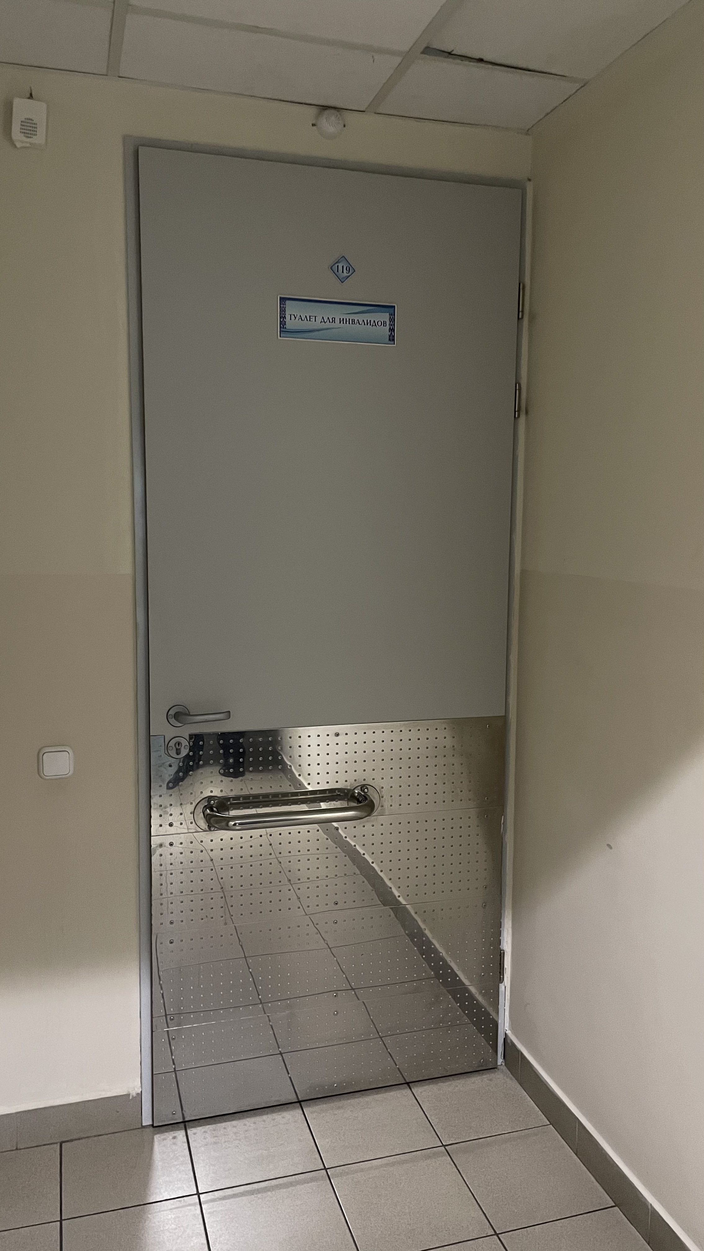 В частности, два центральных входа и вход для лифта оборудованы пандусами, имеется лифт и туалет для инвалидов, кнопка вызова, раздевалки и тренажерые залы также приспособлены к их нуждам.